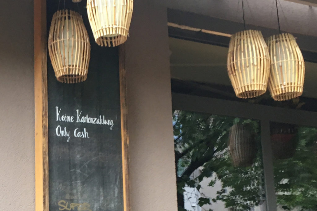 Sign at a restaurant: “Keine Kreditkarten – Cash Only” – Photo: T.Bortels/nuberlin.com