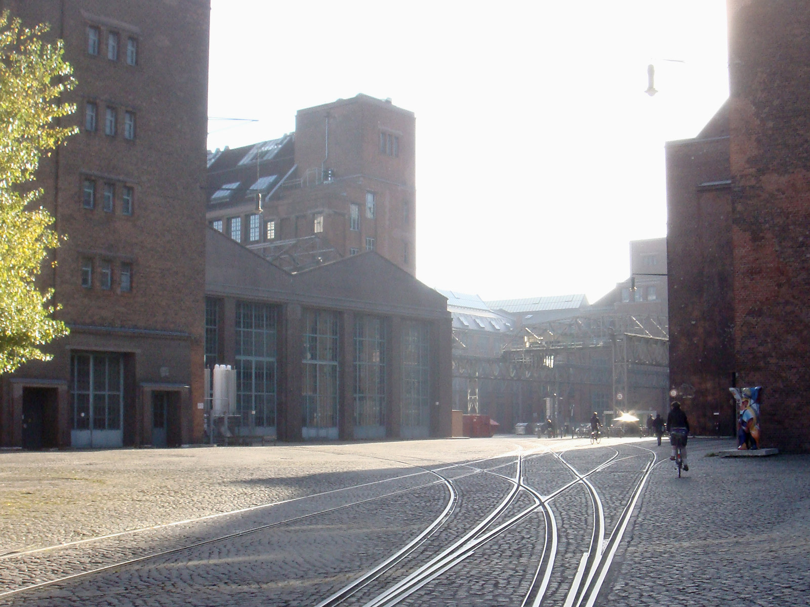 One of the main entrances to the area is located in Voltastrasse, right next to the Berlin headquarters of Germany’s public broadcaster Deutsche Welle. At lunch time you may also eat at the restaurant Neo Kyma which is part of Deutsche Welle building and is located right next to the entrance to the industrial grounds.