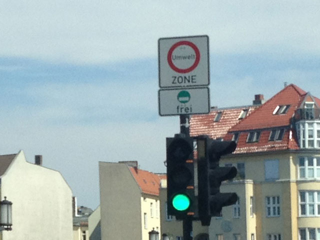 Since 2008 the inner city area of Berlin is a so called emission zone or environmental zone. This means you have to have a valid environmental badge (the round green stickers almost all Berlin cars have) for your vehicle (Umweltplakette) to enter this environmental zone – otherwise you may face consequences and get a ticket.
