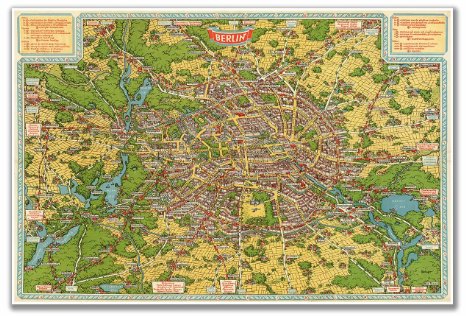 Another historical map of Berlin: the “Birds Eye Map” – circa 1931 Vintage Reproduction 24″ high x 36″ wide (610mm high x 915mm wide)