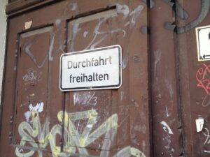 • in front of a sign saying “Parken Verboten” or “Einfahrt freihalten” or “Durchfahrt freihalten” or anything with “freihalten” – this just means that this driveway or spot should be kept ‘free’ and it is generally forbidden to park here – for whatever reason.