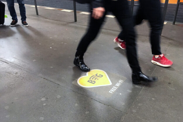 As of this writing (June 2016) there is virtually no Internet access in public transport – at least no free WiFi access like in Tallin or Helsinki. The Berlin’s public transport provider BVG finally recognized the necessity and tries to address the problem. Currently they are testing a free WiFi access point at one U-Bahn station: at U9 station Osloer Strasse you can currently login to “BVG Wi-Fi” and surf the internet for free while waiting for the next train.