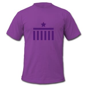 Men’s and Women’s T-Shirts by American Apparel featuring the nuBerlin-Logo – a stylized Brandenburg Gate with a five pointed star on top of it.