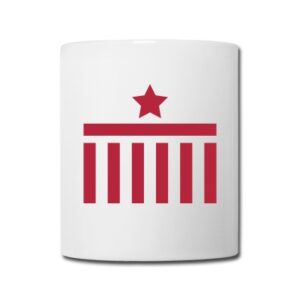 Coffee Mugs featuring the nuBerlin-Logo – a stylized Brandenburg Gate with a five pointed star on top of it.