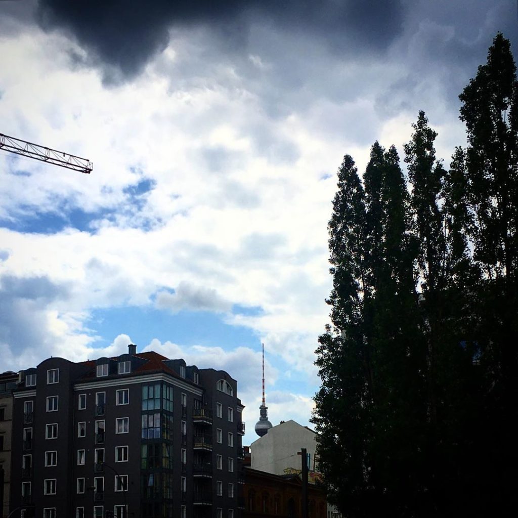 Another photo taken from Ackerstrasse facing towards Invalidenstrasse / Mitte / TV Tower. The rather unspectacular Berlin Skyline as it is seen from this very spot. Luckily some dark clouds add a little bit of drama to the view on this otherwise rather sunny day.